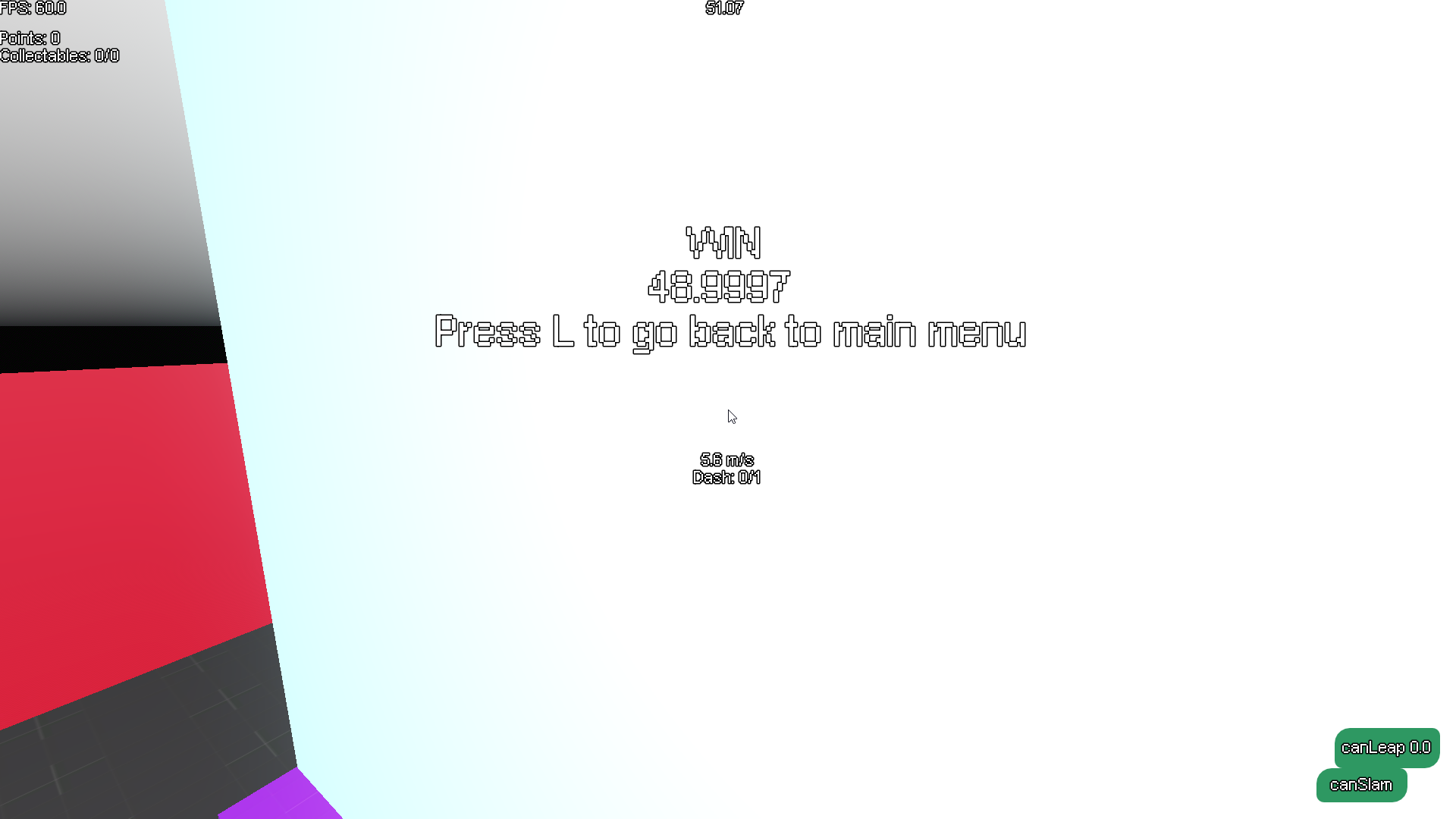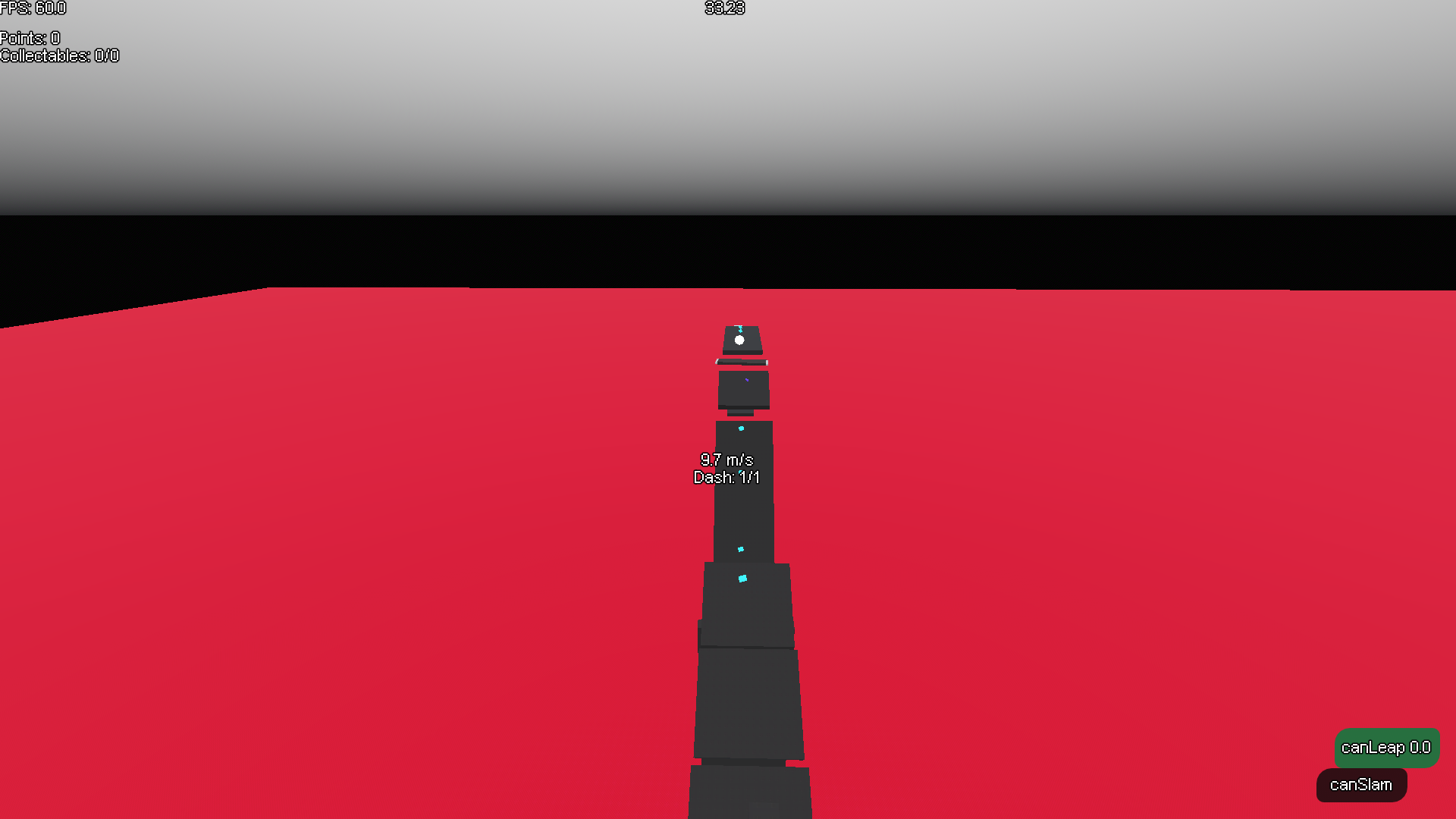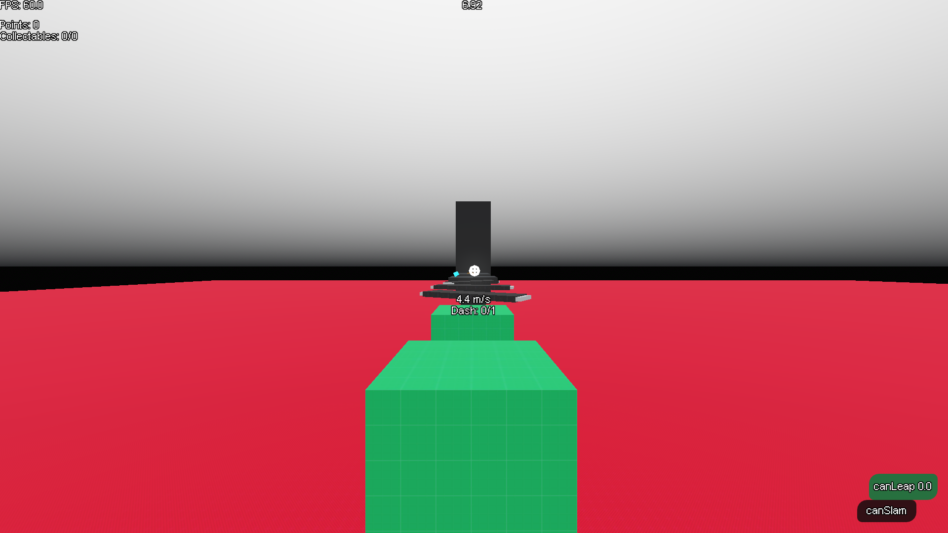 Fixed some player bugs: Leaping can now be activated at any time. Dashing, Leaping and Slamming now add their speed meaning the player can now reach smooth and high speeds.